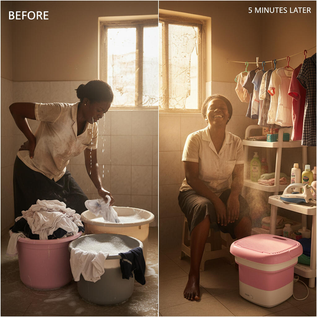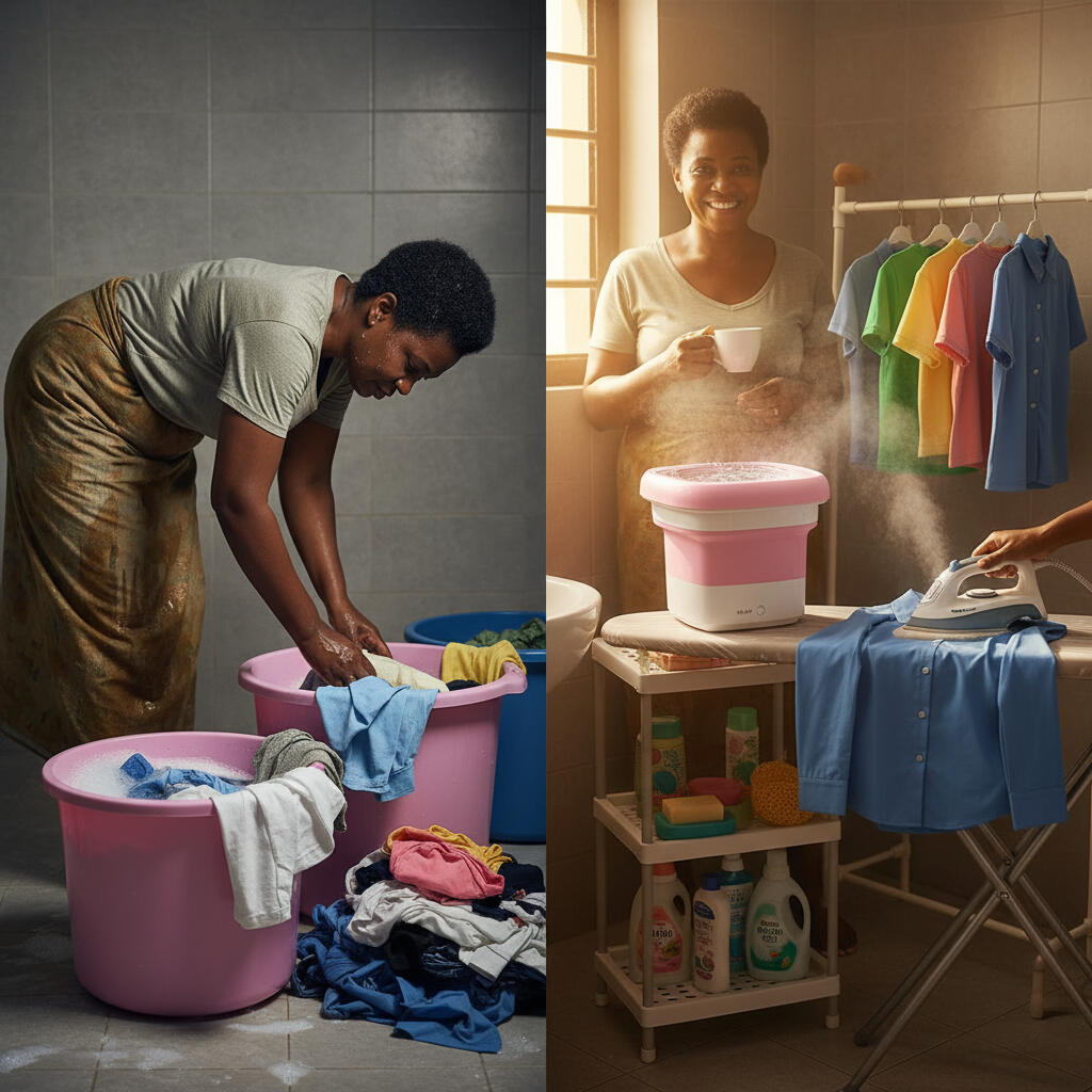 This isn’t just a gadget; it’s Freedom.Designed for the modern Nigerian home, this powerful, foldable miracle handles your whites, baby clothes, and delicates in just 10 minutes while you sit back, breastfeed, or catch up on your favorite show.
